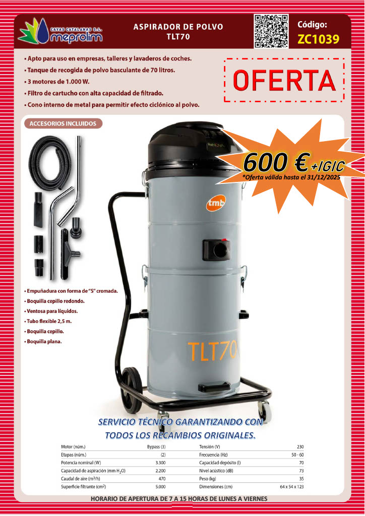OFERTA ASPIRADORA INDUSTRIAL TLT70